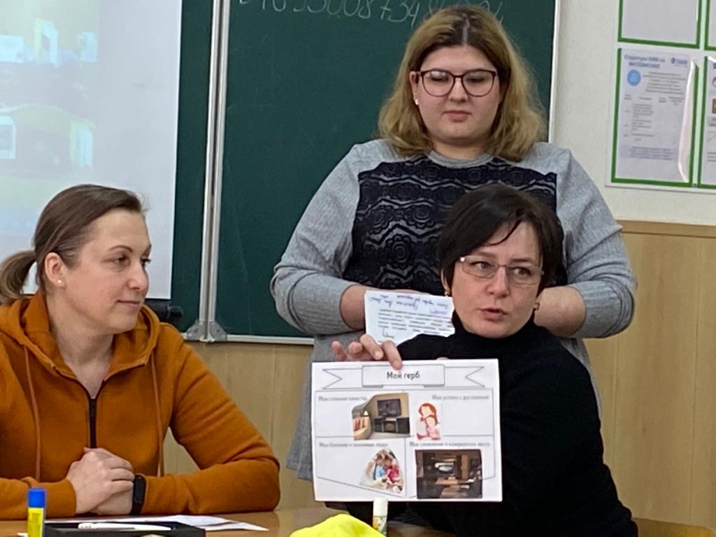 В ходе мастер-класае «Перефразирование негативных мыслей в положительные» педагог-психолог МБОУ гимназии №14 Агаджанова Виктория Станиславовна предложила участникам создать «герб» своего состояния для превращения отрицательных эмоций в дополнительную энергию и использовать ее для достижения целей.